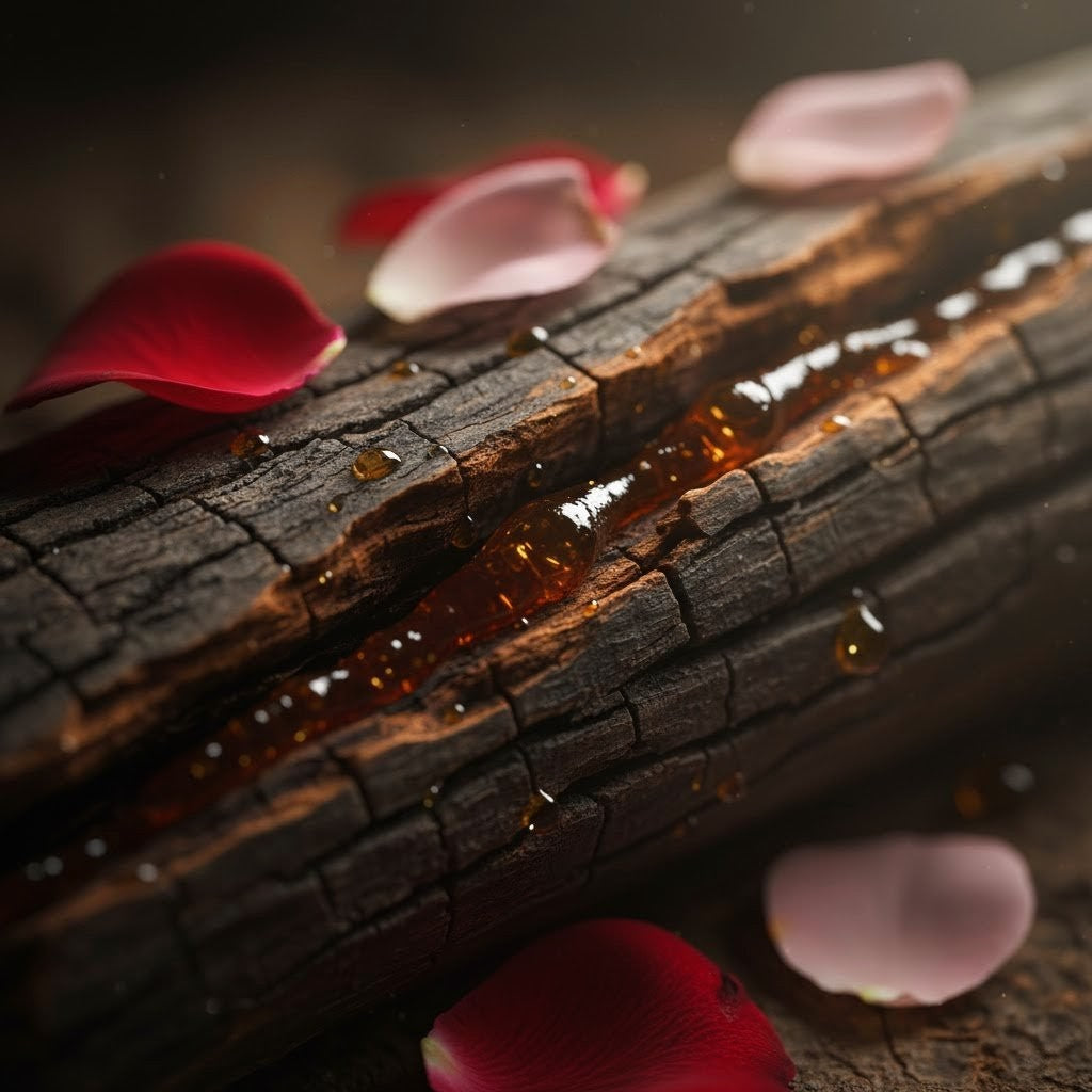 The journey begins with bold, resonant Cambodian oud, its deep crimson hue signaling both rarity and strength. Midway, the soft, romantic heart of Ta’ifi rose emerges, offering a subtle contrast to the oud’s commanding presence. Finally, amber envelops the blend in a golden warmth, leaving a lasting impression of refined luxury.