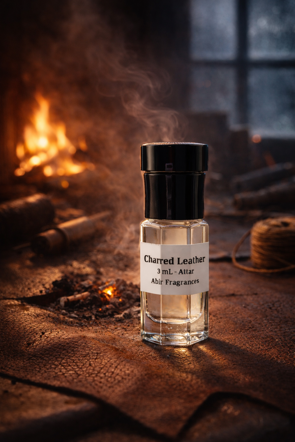 As it settles, the intensity softens. The smoke, fire, and incense mellow into a smooth, intimate warmth that lingers on the skin. Hints of softened leather, embers, and a whisper of soot remain—like a fire slowly dying down, leaving the workshop quiet, warm, and alive with memory.